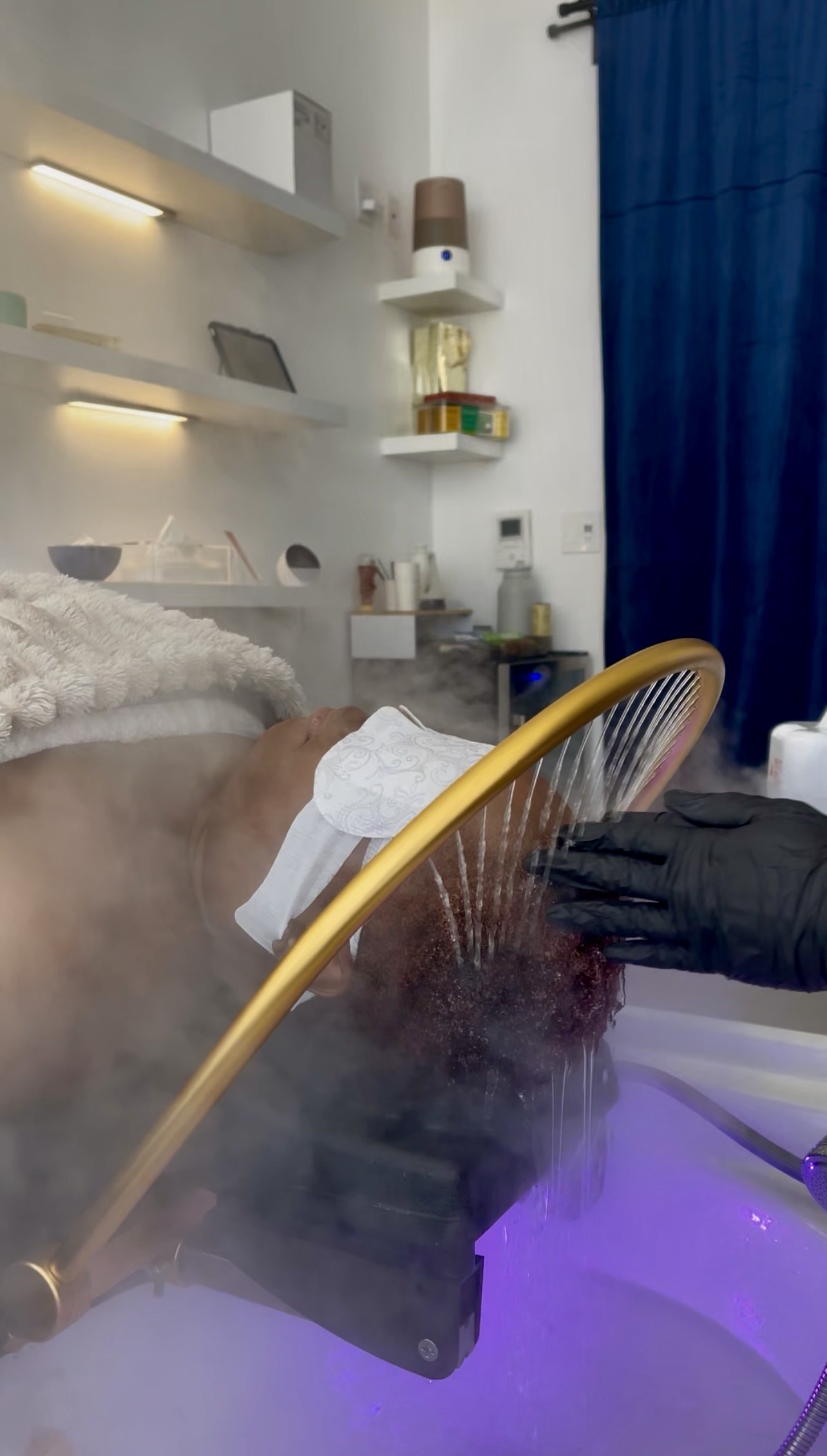 This luxurious scalp care experience is thoughtfully designed to promote relaxation while deeply nourishing the scalp. Your experience begins with a microscopic scalp scan, scalp detox, deep cleansing shampoo, scalp steaming, a relaxing scalp massage, nourishing hair mask, hydrating conditioner, neck and shoulder massage, blowout, trim, and warm tea. This is a blowout only service, created to allow you to fully unwind, relax, and enjoy every moment of your experience.